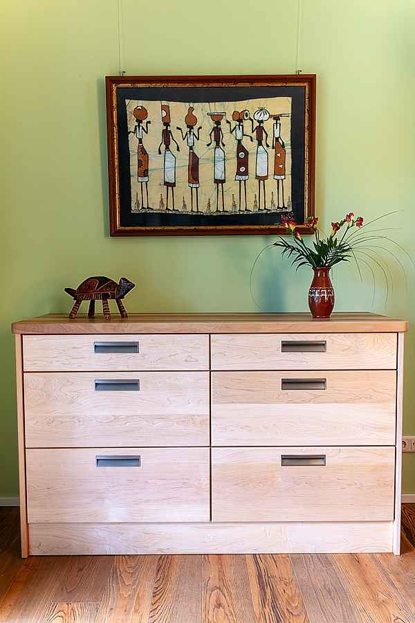 Ein Kunde aus Berlin hatte den Wunsch, Möbel aus allen Holzarten zu erhalten, die wir in unserer Werkstatt verarbeiten. Diese Anfrage erinnerte mich an ein ähnliches Projekt im Raum Wien, bei dem wir eine Küche aus unterschiedlichsten Holzarten gebaut hatten. Der Kunde war so begeistert, dass er uns später den Auftrag gab, das gesamte Haus einzurichten jedes Zimmer mit maßgefertigten Möbeln aus unterschiedlichen Holzarten auszustatten.